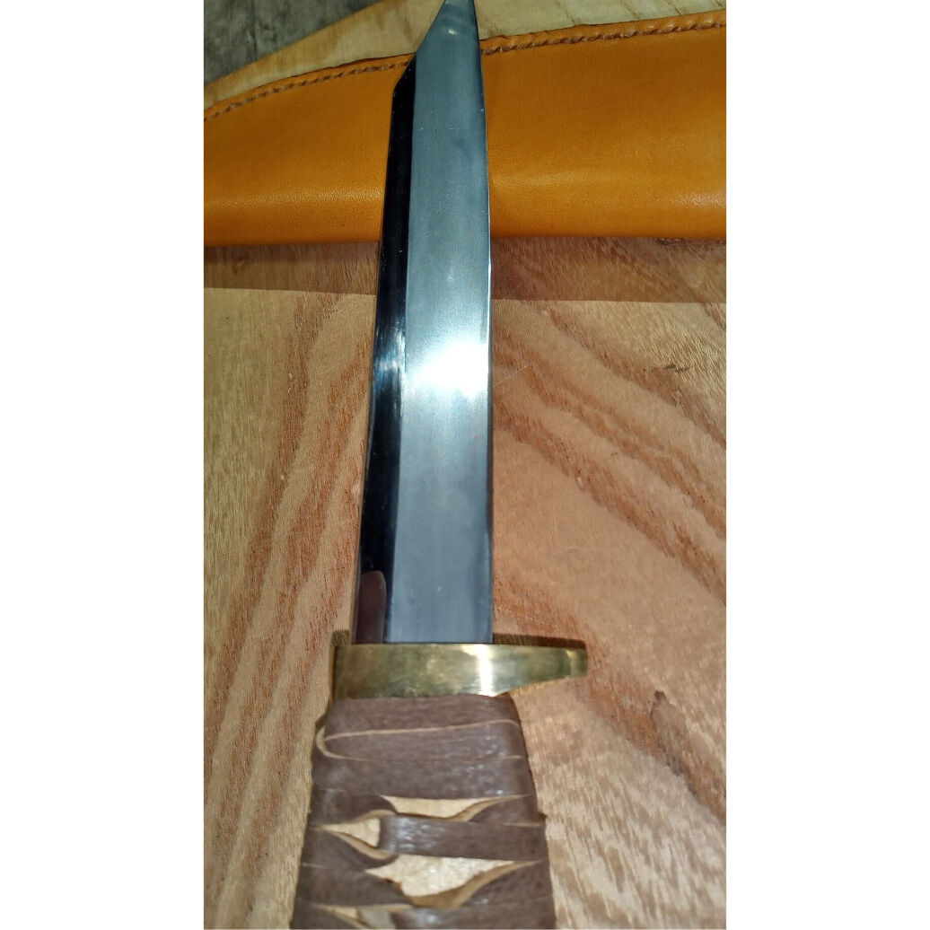 | 商品の特徴 | 日本刀 残欠 ナイフ ⑯ キャンプ アウトドア 調理 釣り アンティーク。日本刀 残欠 ナイフ ⑯ キャンプ アウトドア 調理 釣り アンティーク。日本刀 残欠 ナイフ ⑯ キャンプ アウトドア 調理 釣り アンティーク。ご覧いただきありがとうございます!脇差の残欠を使用し作成したアウトドアナイフです!・銃刀法に基づき作成しましたので 刃渡りも15㎝未満(このナイフは約7.5㎝) ですので登録証・届出など不用です。日本刀 残欠 ナイフ ⑯ キャンプ アウトドア 調理 釣り アンティーク。 もちろん違法な刃物、武器ではありません!・ですが正当な理由なく持ち歩くのは違法です! ↓↓↓↓↓↓↓↓↓↓↓↓↓↓↓↓↓↓↓↓↓↓・キャンプ、釣り、工作、山歩き、伐採など 正当な理由があれば問題ありません!!・全長.14.9㎝・刃渡り.7.5㎝・刃幅.2.2㎝・刃厚.4.5㎜・素人寸法ですので多少の誤差あるかと思います! ご了承下さい!!・刃肌も磨き込んであります!・登録証不要のサイズ中で刃渡りが長いです!・刀身に傷多少あります!・登録証不要の日本刀を使用した アウトドアナイフは珍しいかと思います!・素材は玉鋼を使用しておりますので 日本刀特有の切れ味をご堪能頂けます!・荒研ぎから仕上げまで入念に 研ぎ上げましたのでキンキンの切れ味です! お肉などスパスパ切れます!!・錆び防止の為椿油を塗りこんであります! ご使用の前に軽く拭いて下さい! 食用にも問題ない油ですのでご安心下さい!・柄にケヤキの木を使っています! 硬くて丈夫な素材です! またバーナーで炙って表面を炭化させて いますので、艶が出て強度も上がっています!・鞘は高級杉材を使用し手作業で削り出し 複数の塗料を使用して 時間をかけて仕上げました!・同じ物は無い完全ハンドメイドですので 他人と被らない唯一のナイフです!・キャンプやアンティークコレクションにどうぞ・他にも日本刀残欠ナイフを出品しております ↓↓↓↓↓↓↓↓↓↓↓↓↓↓↓↓↓ #シマトネリコの日本刀残欠ナイフ〜最後に〜 お互いに気持ちの良いお取引きをしたいので 画像・説明文をよくお読みになって ご納得されてからのご購入をお願い致します! 是非ご検討よろしくお願い致しますm(_ _)m | ||